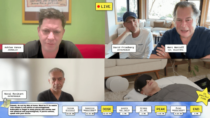 مصرف قارچ جالب نیست. مصرف قارچ روی استریم زنده جالب نیست. مصرف قارچ روی استریم زنده با حضور مهمانانی مانند گرایمز و مدیرعامل Salesforce، مارک بنیاف، به عنوان بخشی از تلاش مشکوک شما برای جاودانگی، متاسفانه جالب است.